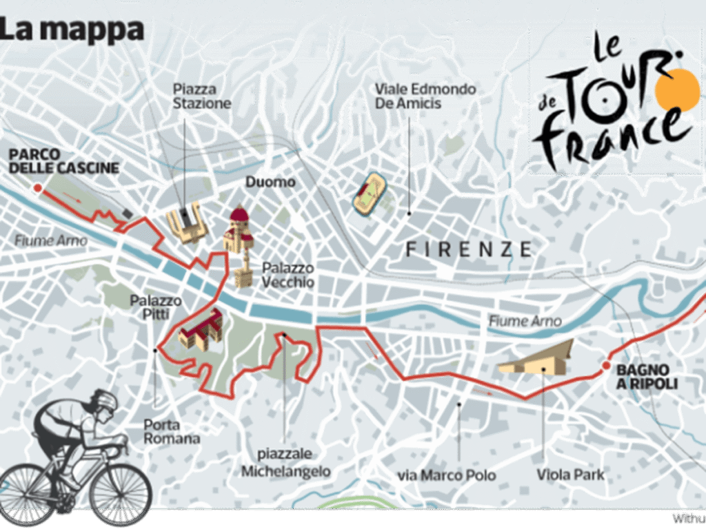 Florentine fans can find the cyclists beginning the race at the Villaggio alle Cascine, at approximately 12 PM on June 29th, in a non-competitive mode and will head towards Piazza della Signoria, where it will stop for an official start.