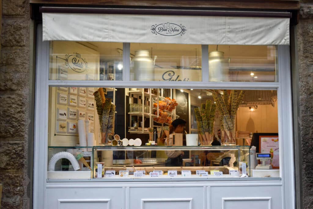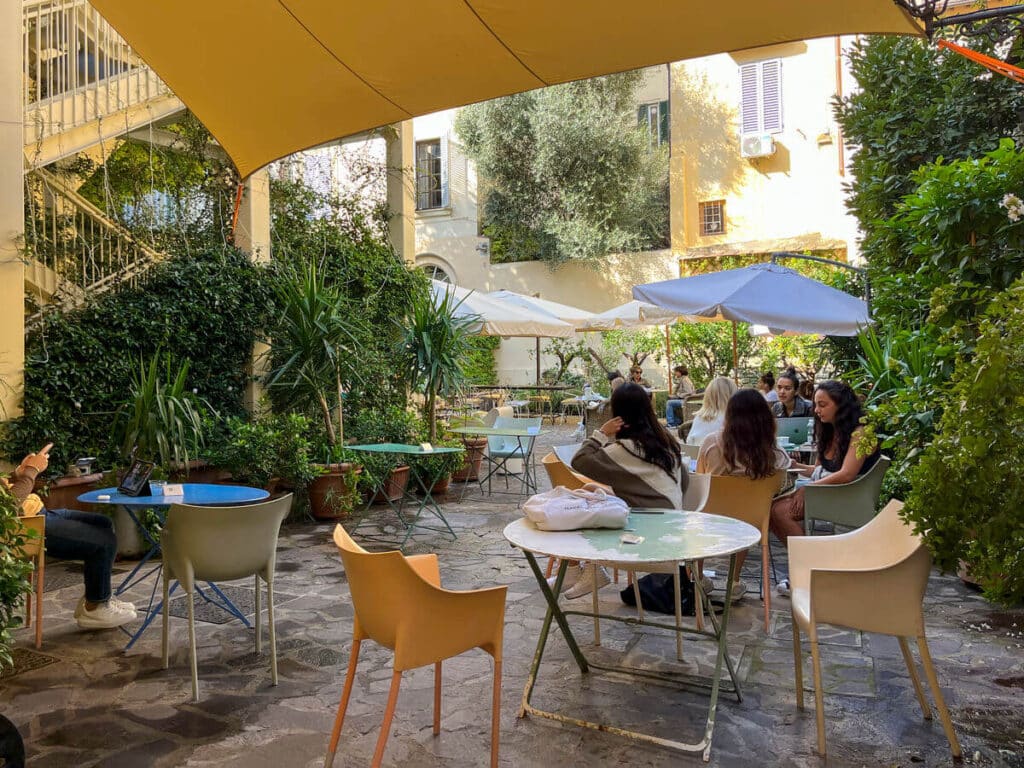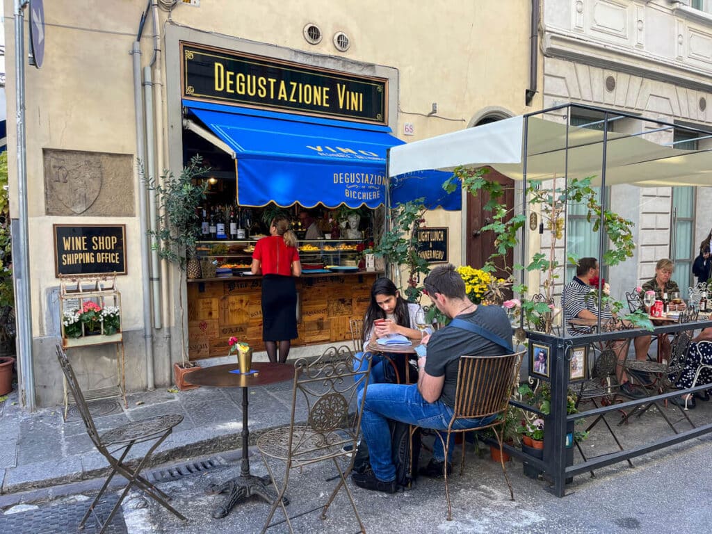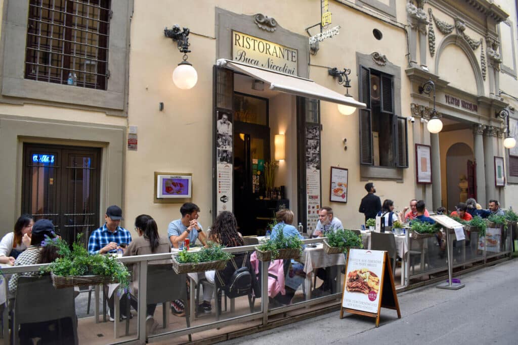 If you are craving gelato, cake, cookies, macaroons, or just anything good and sweet, you’ll find it at Don Nino, a cute corner store, with glass windows, outdoor seating, and lovely indoor decorationFamily-owned, Ristorante Buca Niccolini offers a vast menu, covering breakfast, lunch and dinner, offering dishes that range from pizza to traditional Florentine steaks, to other traditional Tuscan delicacies and finally, wine, from their centuries old tavern.Up next, the oldest theater in all of Florence welcomes you. Dating back to the mid-1500s, it was the first modern theater of its time. Find out its program and visit the place that has entertained Florentine society for over 3 centuries. It is also a good coffee spot with outdoor seating.If you are craving a big, juicy Bistecca alla Fiorentina, don’t hesitate and go straight to Regina Bistecca, where you’ll find a nice atmosphere, good music, and the best food. Make sure you make a reservation first!For authentic, deep-flavor gelato, visit La Strega Nocciola Gelateria Artigianale, we recommend trying pistachio, dark chocolate, and of course, their nocciola!This street takes its name from the aristocratic Ricasoli family, whose palace, specifically Bettino Ricasoli’s, you can find at number 9, in the corner with Via del Biffi.In the next corner, look out for the Tabernacolo Delle cinque Lampade, a beautiful shrine with two frescos dating back to the 13th-14th century and decorated with five hanging lamps.Opened after the Second World War and owned by generations of a family with a particular love for Philately, Torello Orlandini is a stamps collection store, full of unique, historical, and authenticated pieces from all over Italy.As you keep on walking, keep an eye out for all the little paintings and posters of famous artworks located throughout the street!Under the neon sign announcing it, Profumeria Invicta maintains its antique style with flowers hanging at the front door. It has a great variety of hair accessories and of course, fine perfume for all those vintage lovers out there. Palazzo Villani Stiozzi Ridolfi is today the home to Fedora, a delightful, hidden garden restaurant and pastry shop, managed by teachers and students of the culinary laboratory of APICIUS International School of Hospitality, It offers a great variety of international and seasonally inspired dishes. The Palazzo also hosts many student art exhibits from the FUA (Florence University of the Arts) as well as little vintage and plant markets. Discover the centuries-old, Florentine extraordinary craft next door at Scarpelli Mosaici, where you’ll be able to look up close at the expert and patient hands of those who still master this antique mosaic technique.For a new way to experience art, you have to stop by the Selfie Museum Firenze, where you’ll be able to explore different rooms with varied styles and motives, as well as immersive installations that will be the perfect settings for your photos and videos. Great wine, great music, and great cured meats can be found at Antiche Dogane in the corner with Via degli Alfani.Right across the street, in little Piazza delle belle Arti you’ll find Luigi Cherubini Conservatory of Music and the world-famous Galleria Dell’accademia, best known as the home of Michelangelo’s David, and many other paintings, sculptures, and masterpieces by Florentine artists from the 14th up till the 17th century.Right in front, Libreria Gozzini, is an antique, rare, well-stocked book store that is worth visiting as well. To end on a high note, you should stopat the famous All’Antico Vinaio. Declared the best panini shop in 2014, it is not a surprise that the place always has a queue, but believe us when we tell you, it is really worth the wait.